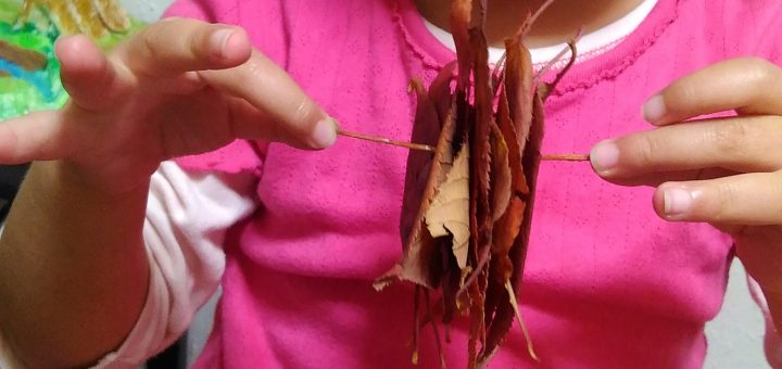葉っぱに穴をあけて、ツルに通して アクセサリーを作ることを考えて 作...