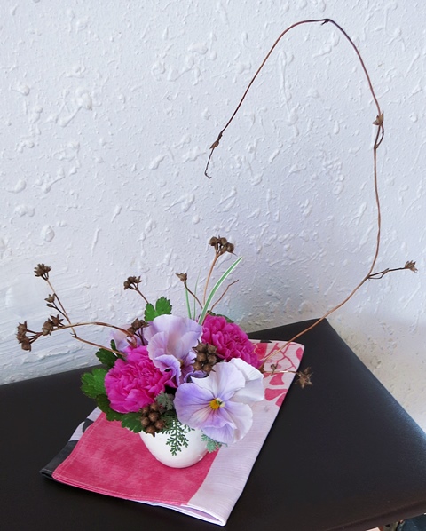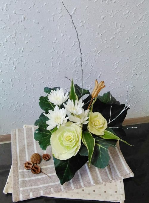 お正月花の「葉ぼたん」と「菊」を飾り変えしました。