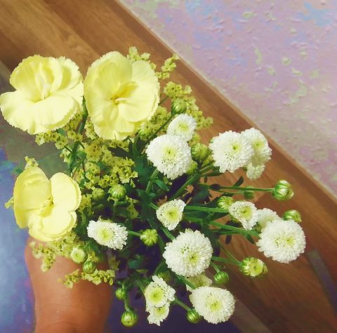 可愛い クリーム色の束の花を買ってきました^^