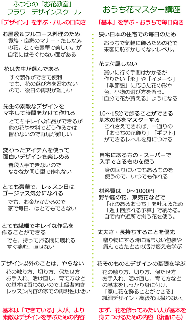 ◆「【おうち花マスター講座】と 他のお花教室やフラワースクール