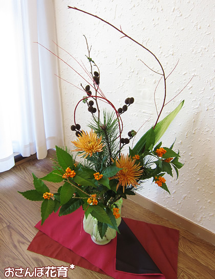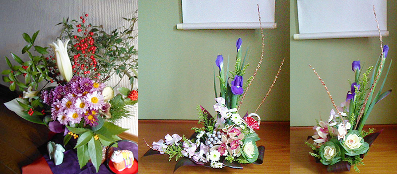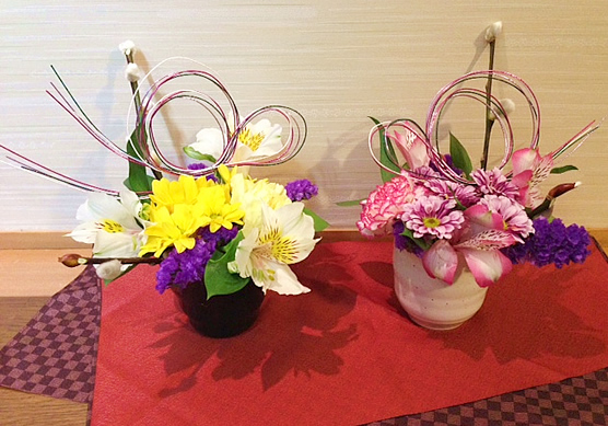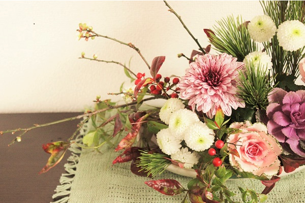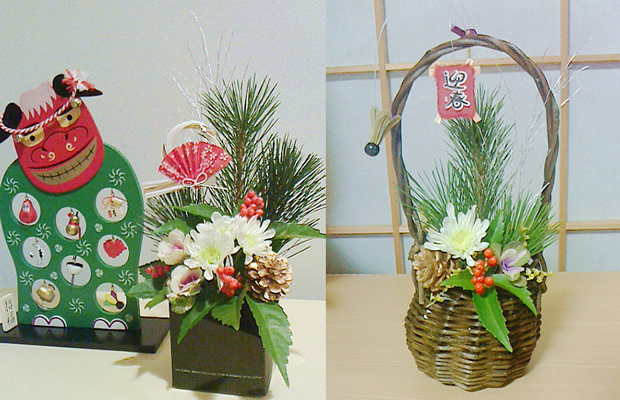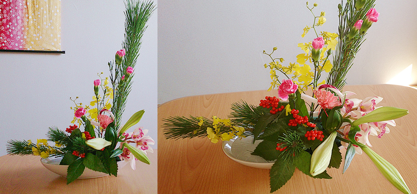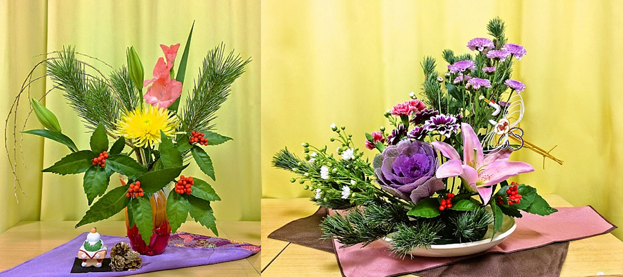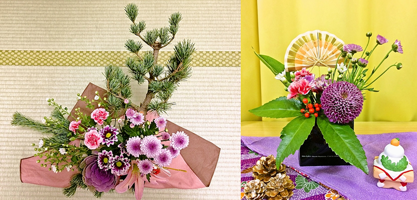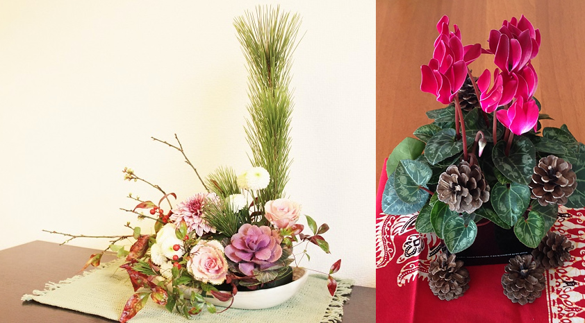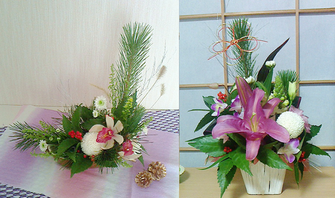 12月:お正月を迎える花~L字アレンジメント &和風投げ入れ