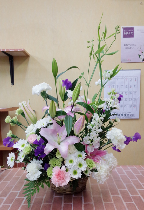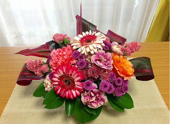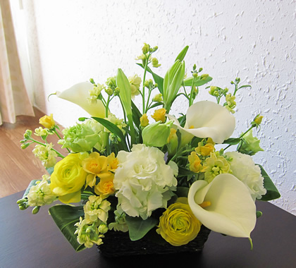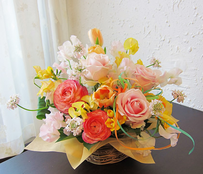 4月:壁際に置く背面のあるアレンジメント~扇形アレンジ