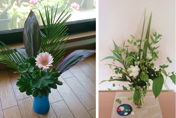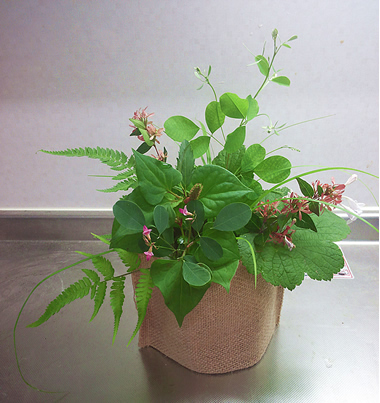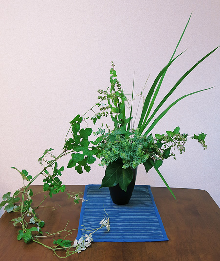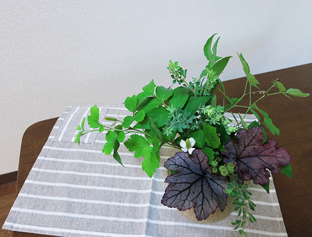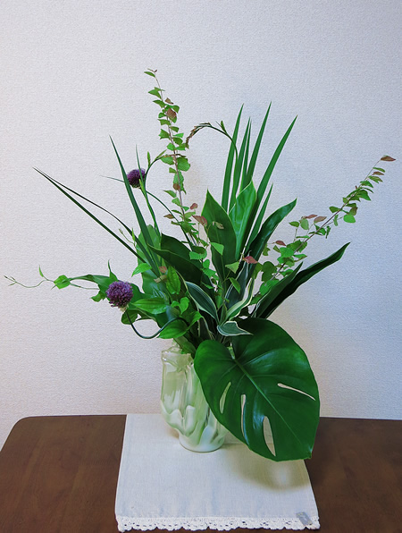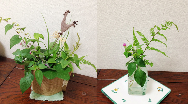 7月:暑い季節の「葉っぱだけ」グリーンアレンジ~投げ入れ