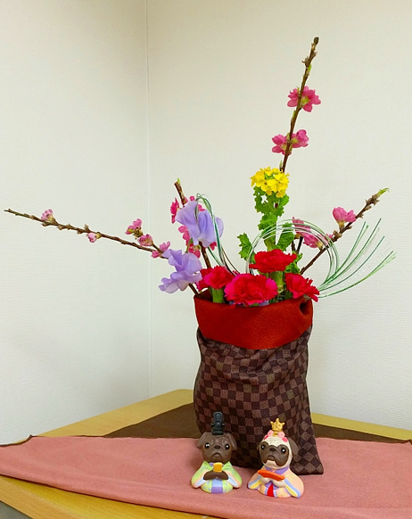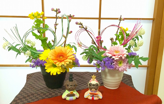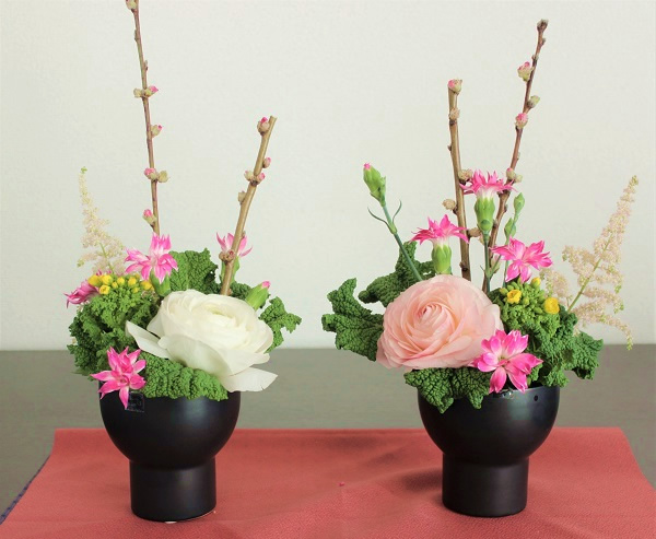 ひな祭りをテーマに、「ペア」の「モダン和風」投げ入れ飾りを作ります。
