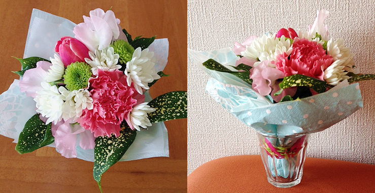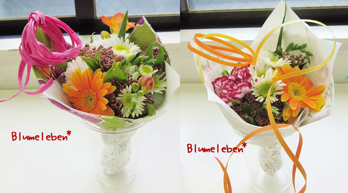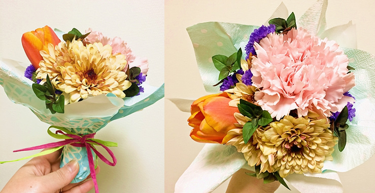 送別シーズンに作りたい「ミニブーケ」をなんと!「スーパーの束売り花1つ」で作ります。