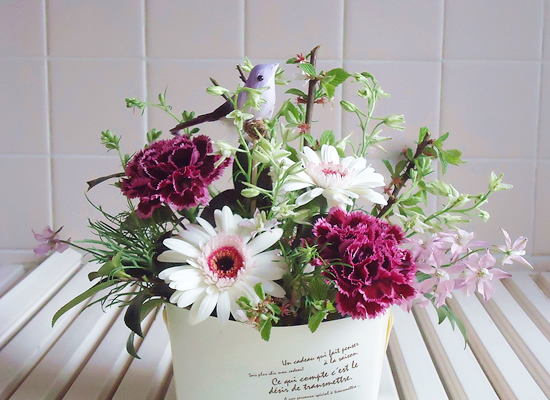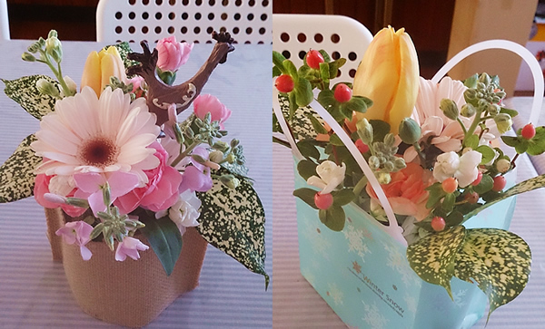 「スーパーの束売花1つ」で じゅうぶん可愛く作ることができ、受講生さんに大人気!