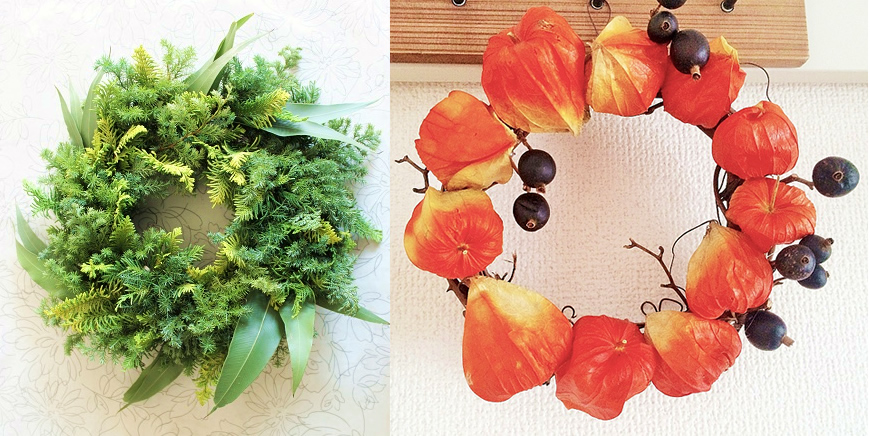 9月:春まで着せ替えて楽しむリース作り & お月見花