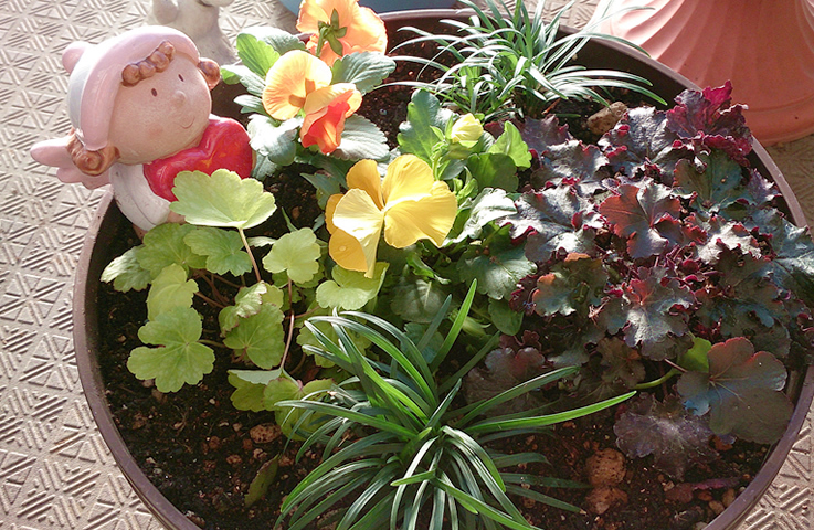 寄せ植え、ではなくて、「入れ物に苗を入れただけ」の『寄せ鉢』を作ります。