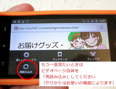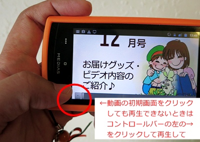 *Android 4 のタブレットでは ビデオの画面をクリックで再生できました